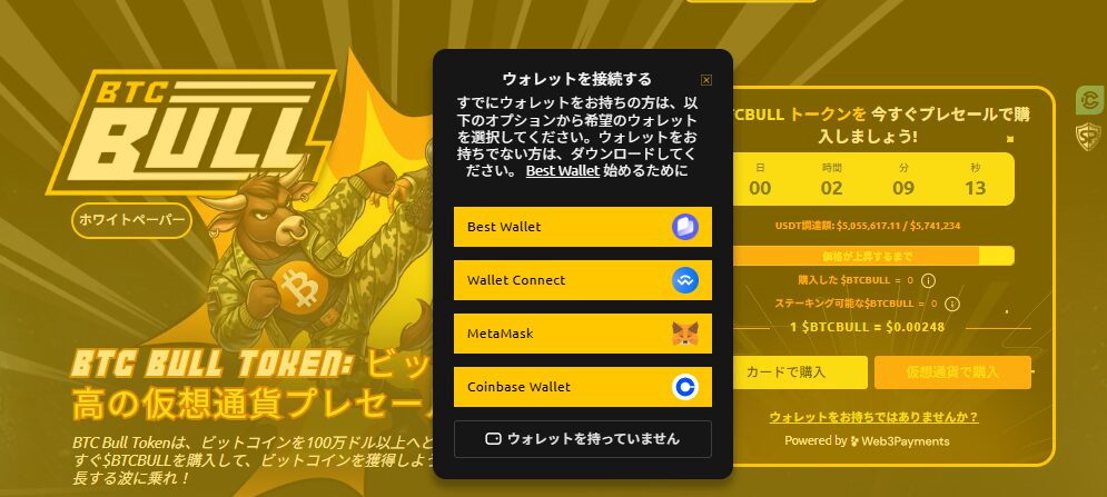 ステップ2:ウォレットをBTC Bull(BTCBULL)公式サイトに接続