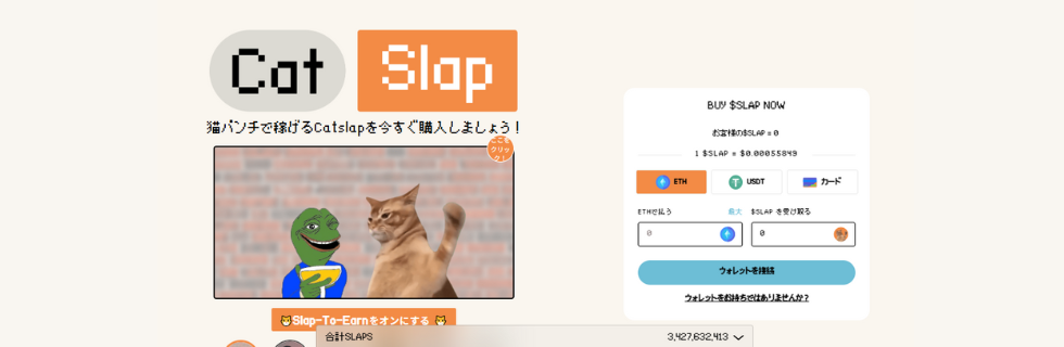 CatSlap(キャットスラップ)は、次世代の「遊べるミームコイン(Play-to-Earn型)」として注目されている仮想通貨です。