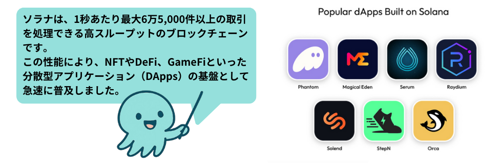 この性能により、NFTやDeFi、GameFiといった分散型アプリケーション(DApps)の基盤として急速に普及しました。