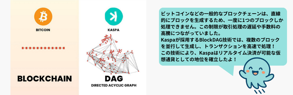 特に BlockDAG構造・GHOSTDAGプロトコル・kHeavyHash といった独自技術により、