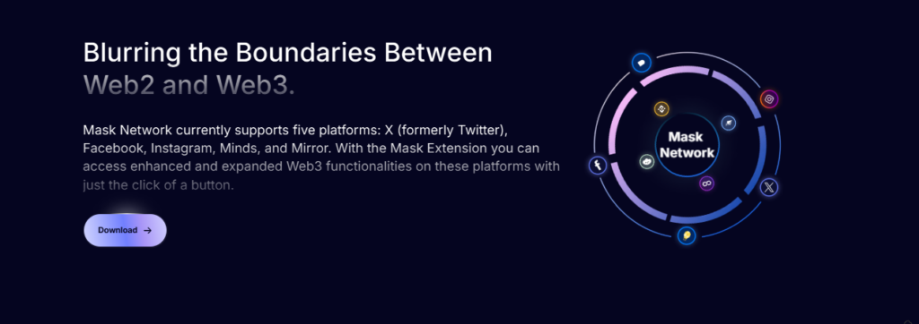 MASKは、既存のSNS上で暗号化通信や仮想通貨取引を可能にするためのトークンで、「Web2とWeb3をつなぐインターフェース」として機能します。