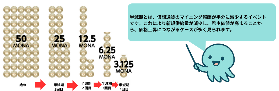| 最大供給量 | 105,120,000 MONA(1億512万枚) |