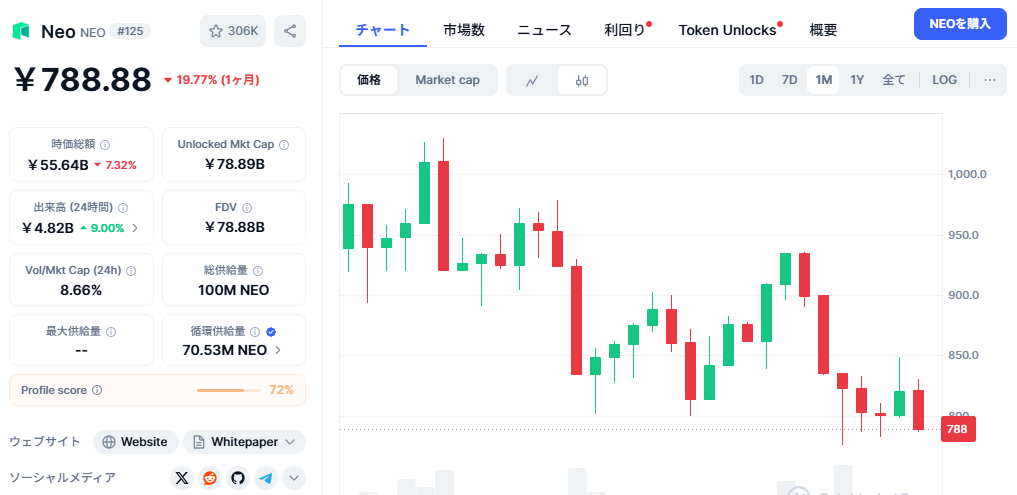 | トークン構造 | NEO(ガバナンス)+ GAS(手数料) |