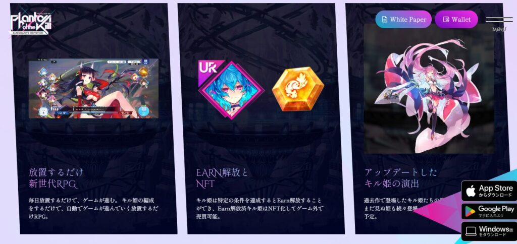 このゲームでは、キル姫を育て、覚醒させ、NFT化して外部に持ち出すことが可能。ゲームを楽しみながら、キャラ育成の成果を仮想通貨として還元できる、“Play to Earn”型の設計になっています。
