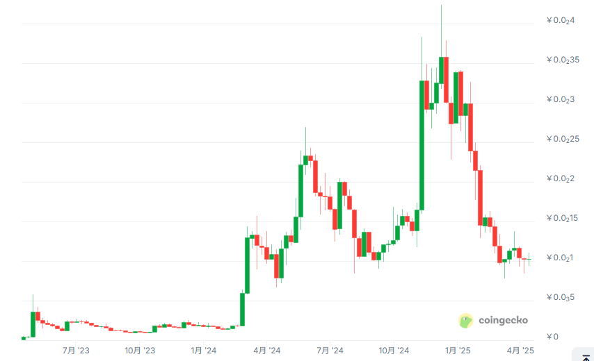 - 2025年4月時点で 1PEPE ≒ ¥0.001未満