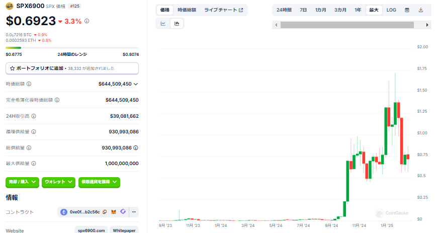 SPX6900(SPX)は、2023年8月に誕生した暗号資産(ミームコイン)です。