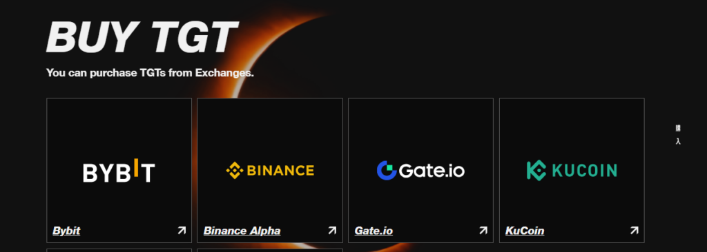 2025年5月21日の同時上場により、TGTは世界中の取引所に流通。Bybit・KuCoin・MEXC・QuickSwapなど大手プラットフォームとの連携で、アジア圏を超えて欧米市場への拡大も進行中です。