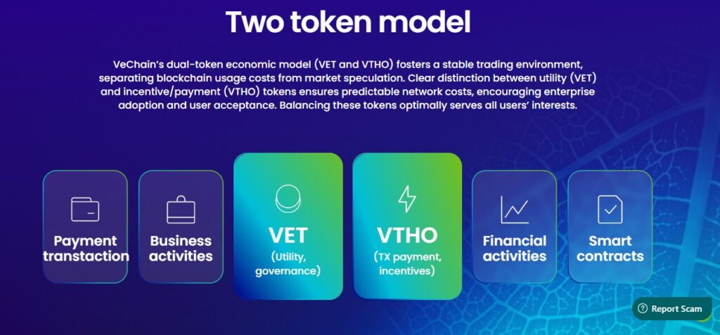 同時に、もう1つのトークン「VTHO(VeThor Token)」を自動生成する仕組みがあり、VETを保有することでネットワーク運営にも貢献できるのが特徴です。
